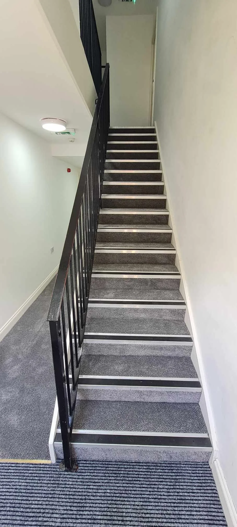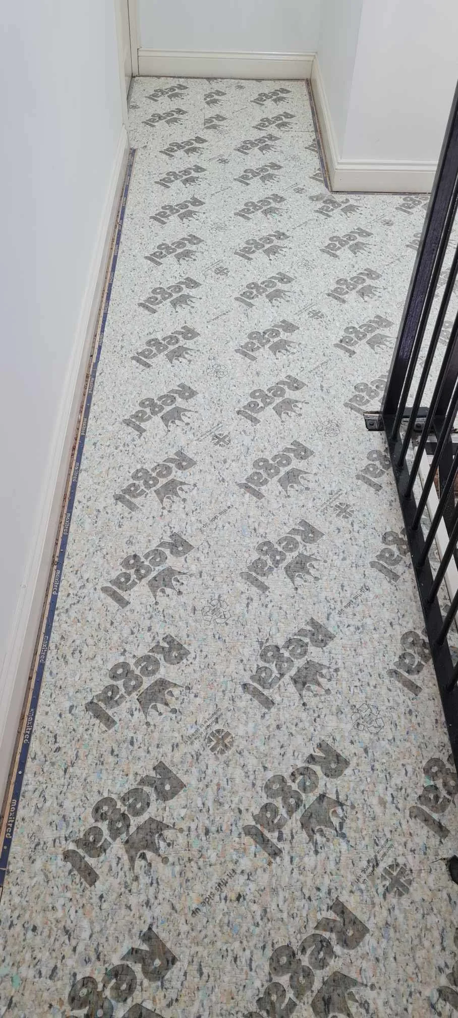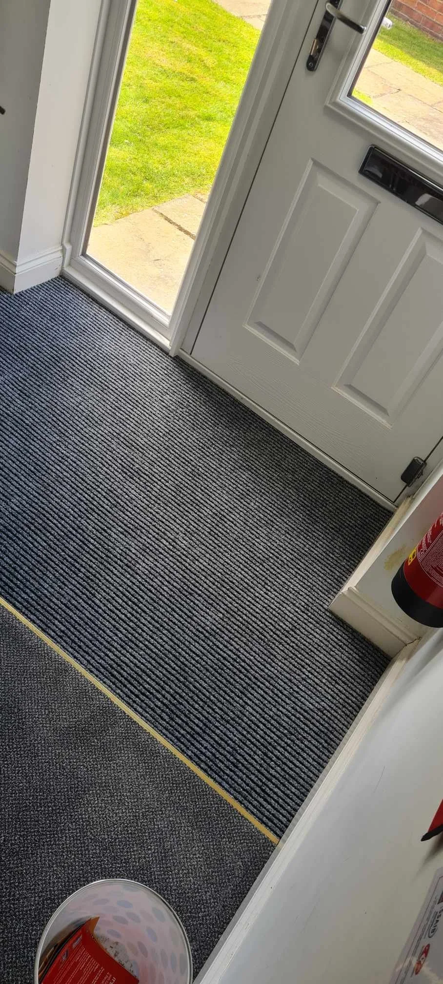 9mm regal high density underlay with cormar primo tweeds in Mineral grey, Entrance matting in ribbed grey